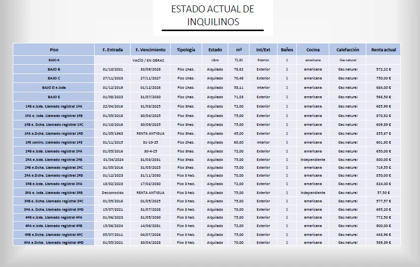 2 pisos vacíos, el resto rentas antiguas que terminan a final de año 2025.