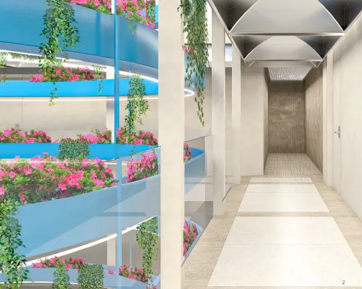 El edificio tiene 4 plantas de sótano destinadas al uso de aparcamiento, con 81 plazas, mas 5 plantas sobre rasante.